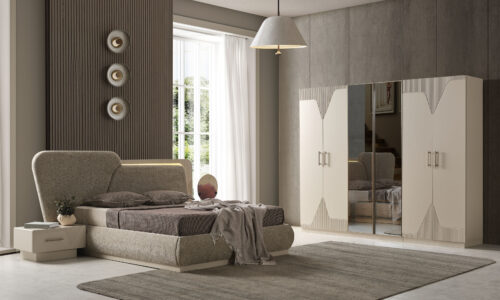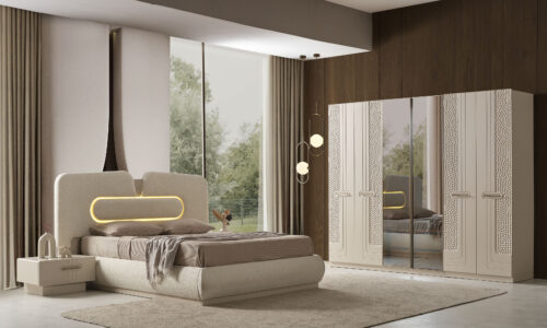 79.900 ₺Set içerisinde 4 kapak mdf kapaklı+2 kapak reflekte camlı dolap, 2 komodin, şifonyer ve aynası, baza ve başlık bulunmaktadır.